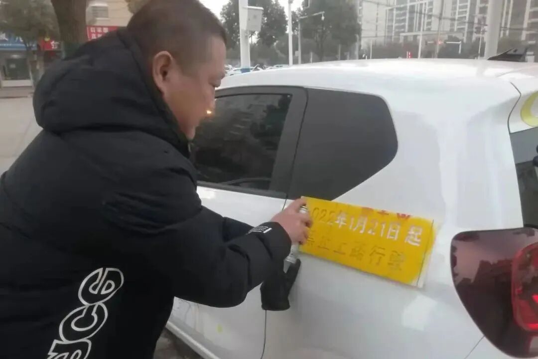 新春到来之际,为了营造良好的道路交通环境,进一步提升群众对电动车综合整治工作知晓率,按照《临泉县电动车综合整治方案》要求,在宣传阶段,各街道组织工作人员携带喷涂模板,走上街头,对过往非标电动二、三、四轮车喷涂“2022年1月21日起禁止上路行驶”警示标语;同时,耐心地向群众讲解整治非标电动车的目的、禁行区域、时间和意义,详细讲解驾乘非标电动车的危害及后果,并现场回答群众所关心的相关问题,劝导广大群众做到不购买、不驾驶、不乘坐非标电动二、三、四轮车。