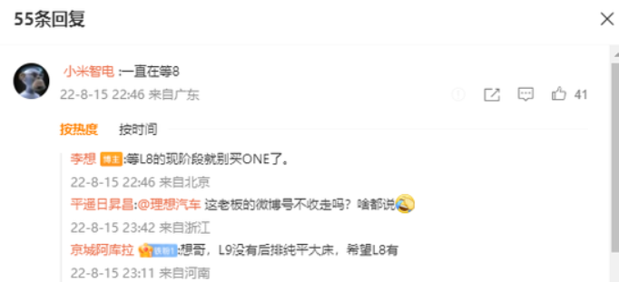 8月15号,李想在微博上回复了一句,“等L8的现阶段就别买理想ONE了”。