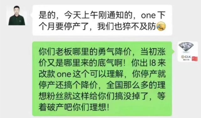 或许对于理想ONE即将停售这件事,许多理想的销售也是刚刚知道,还处于一脸蒙圈的状态。