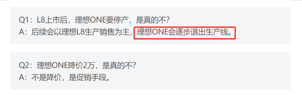 但紧接着没过多久,某家媒体在致电理想客服时理想就改了口径,称理想ONE会逐步退出生产线,意思就是确定会停产。