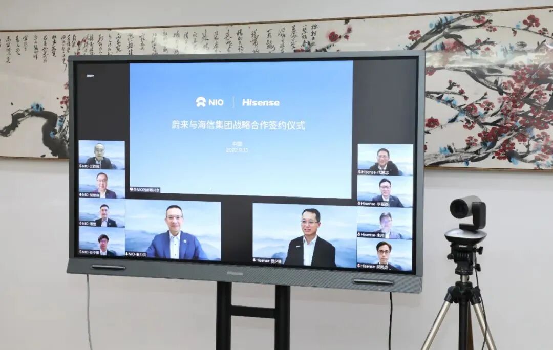 9月13日,海信集团与蔚来签署全面战略合作框架协议。据海信官微发布的文章显示,双方将在新能源汽车产业相关领域(包括车用空调、整车热管理系统、智能交通、车路协同、新型显示及多媒体技术产品等)、海外市场拓展、家电产品集采等领域开展多产业、全方位的战略合作。