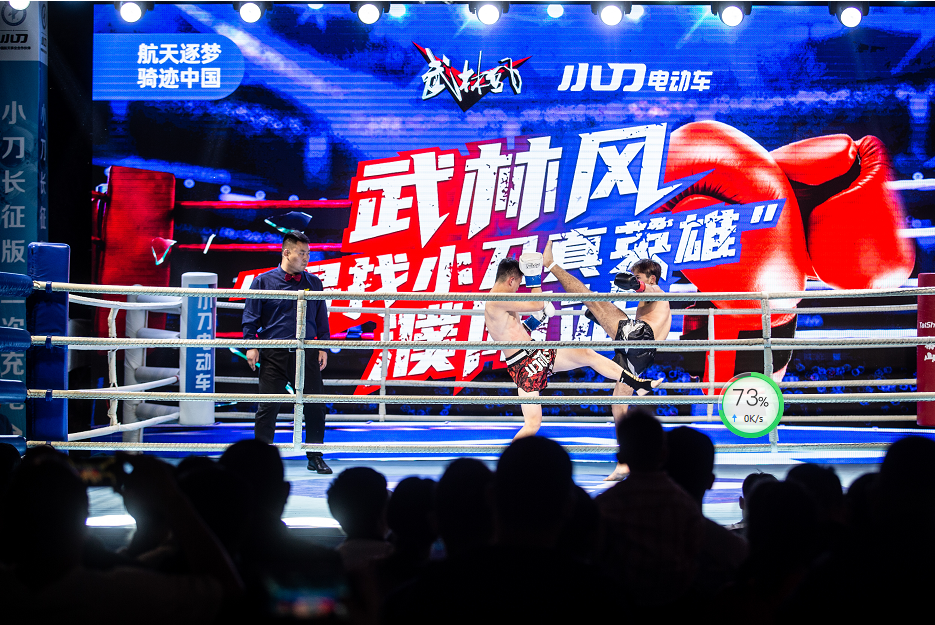 在“航天逐梦·骑迹中国”小刀长征版全国巡展邢台站、濮阳站的现场,小刀就携手河南卫视,将《武林风》搬到了大舞台上,黑旋风王知亮更是摆擂广迎英雄进行挑战,新奇惹眼的联动让人直呼“刺激”!