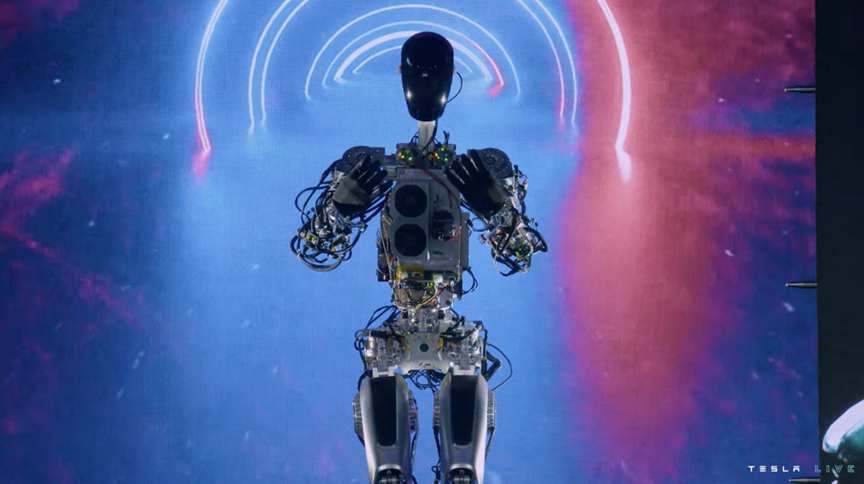 北京时间10月1日,Tesla Bot人形机器人“Optimus”(擎天柱)原型机迎来全球首秀。原型机没有外壳,直接讲关节、骨骼、电缆等内部构造呈现出来,直观展示各个动作细节。