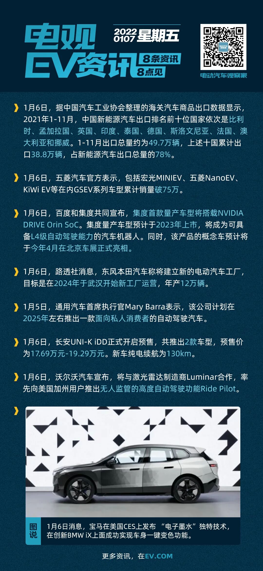 ■1月6日,五菱汽车官方表示,包括宏光MINIEV、五菱NanoEV、KiWi EV等在内GSEV系列车型累计销量破75万。