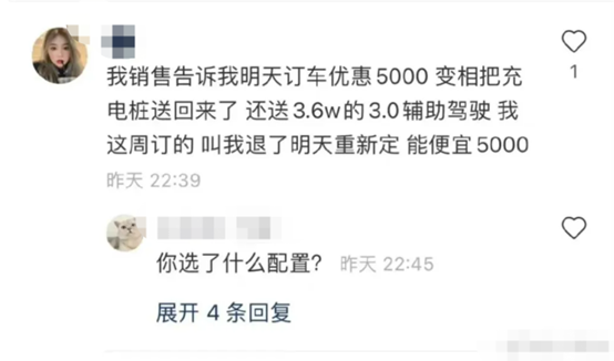 总之,就是想尽各种方法,花式降价促销。之所以他们不像特斯拉一样“头铁”,直接把降价摆在明面上说,可能怕是像特斯拉一样被喷“割韭菜”吧。
