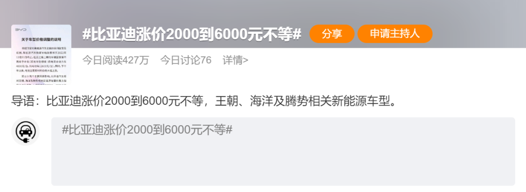 于是乎,比亚迪涨价的消息,也是顺利登上了热搜。