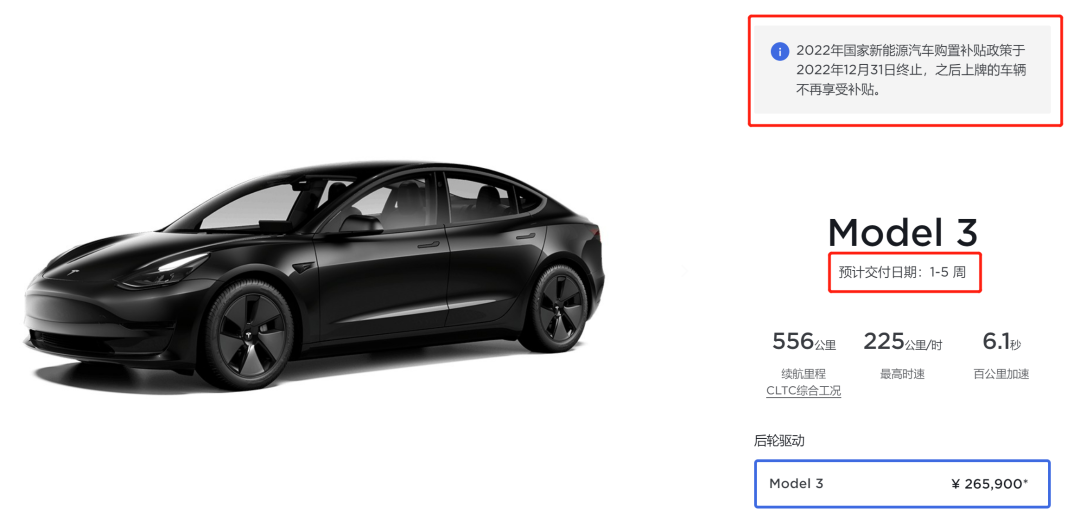 如果你最近点开过特斯拉的官网,会发现现在买一辆Model 3,从下定到提车只需要短短1-5周的时间了。同时还挂上了友情提示:12月31日后上牌的不再享受补贴!
