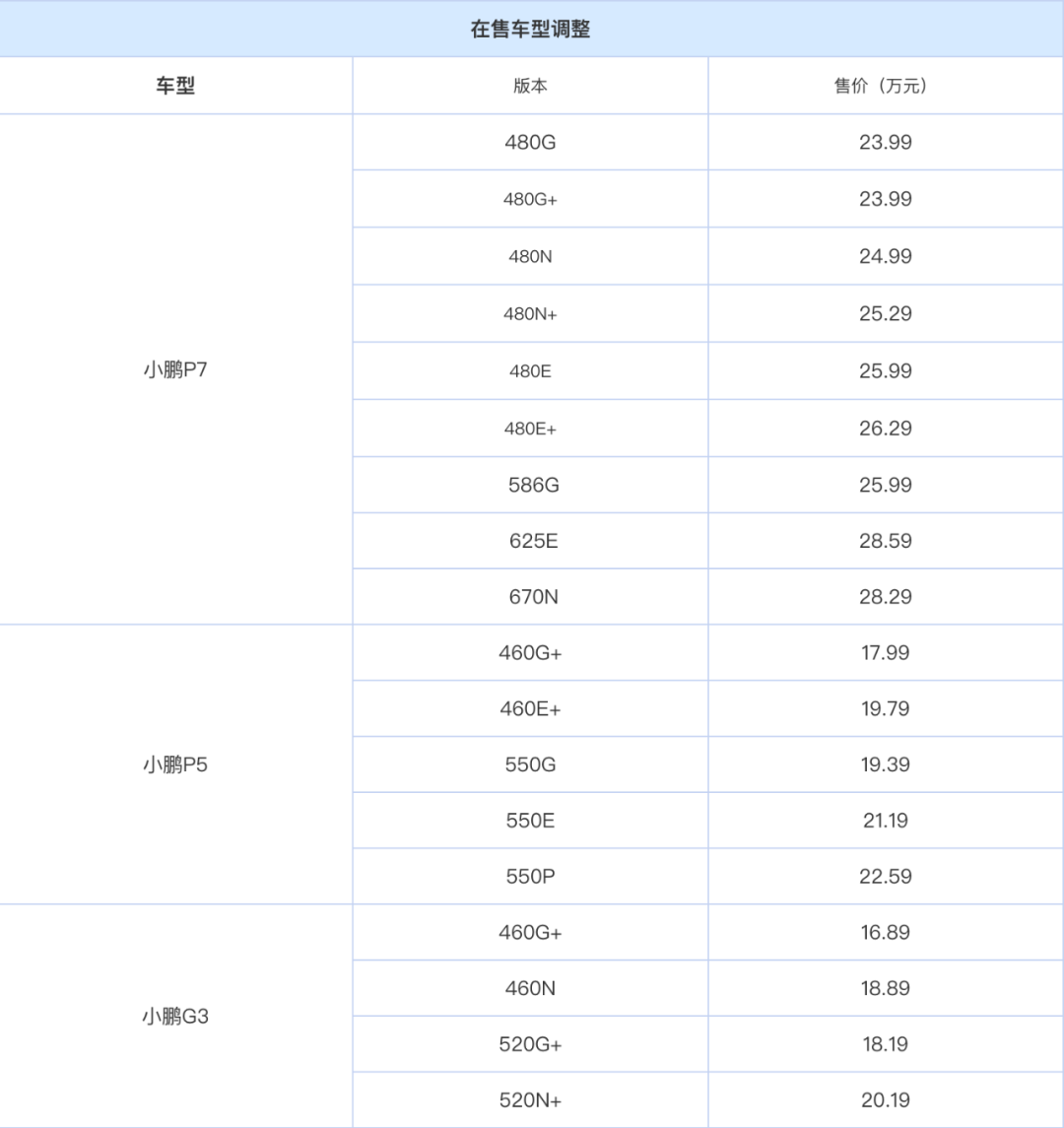 小鹏P7/P5/G3部分配置车型正式停售;