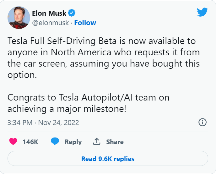 虽然不知道北美的特斯拉车主愿不愿意花15000美元去购买仅仅是L2级别的辅助驾驶功能,但敢在中美的两大波召回事件尚未落幕、国内潮州特斯拉事故也未完全平息的情况下,依旧按计划开放FSD,也从侧面证明了特斯拉对自家智能驾驶技术的自信。
