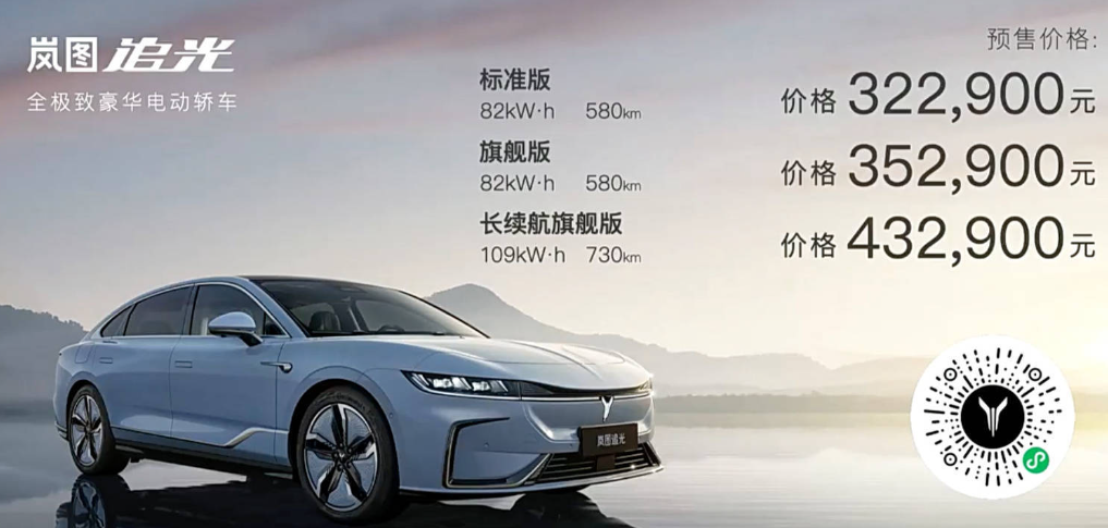 岚图追光正式上市,售价32.29~43.29万元;