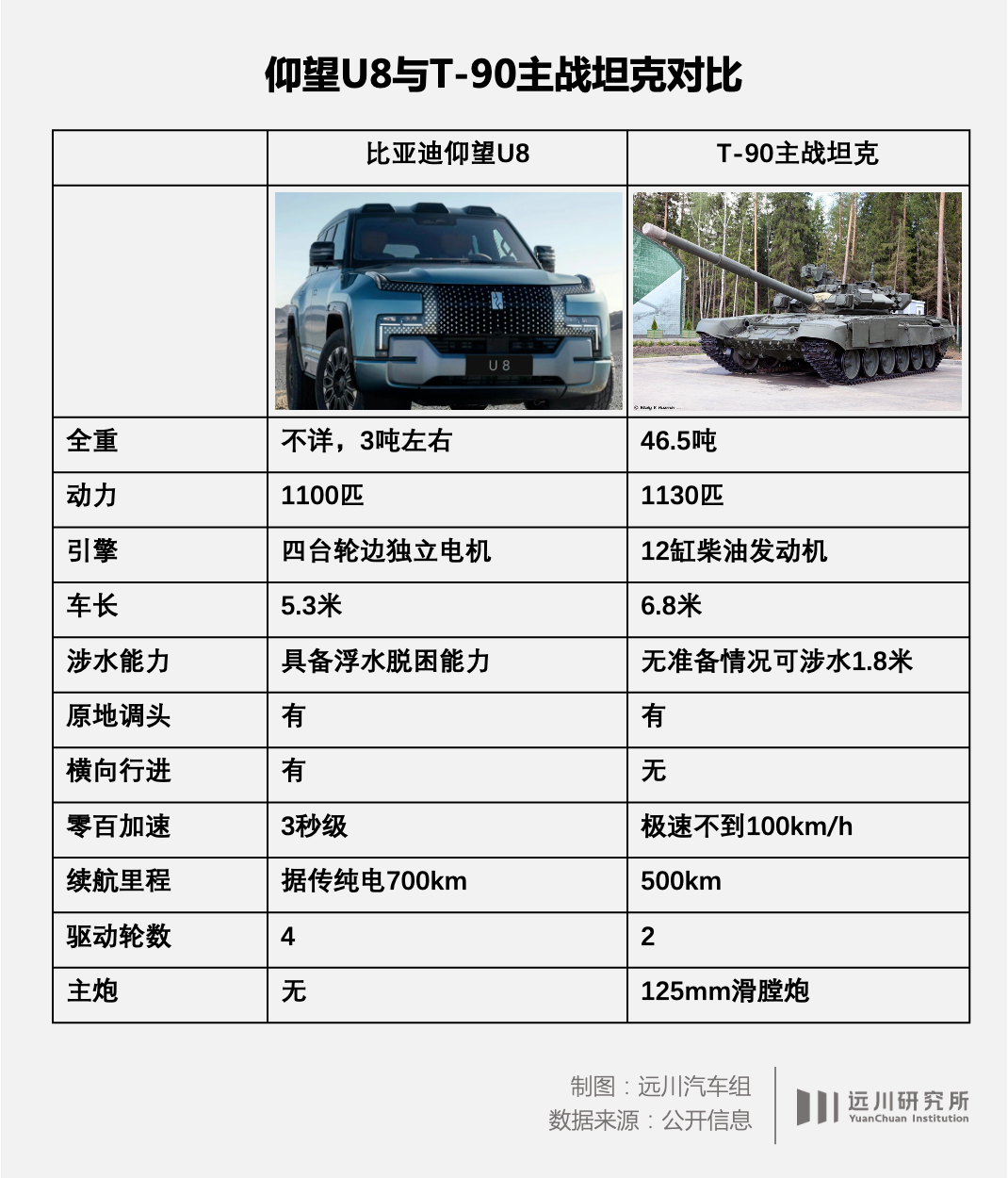 难怪在发布会之后,有博主直接拿仰望U8和坦克做起了对比。别说,好像除了涉水能力差一点、少了个主炮之外,仰望U8还真能说是“优势在我”