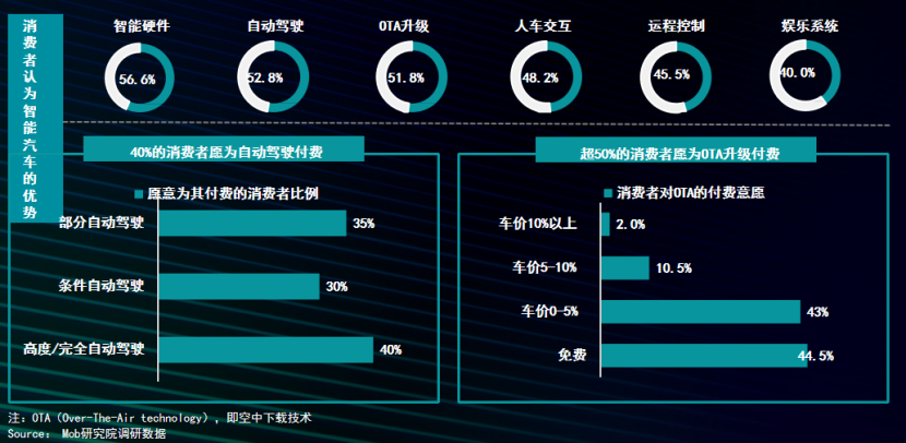 电观大会演讲嘉宾,易车研究院院长周丽君介绍,根据易车研究院做的调研,3000份调研用户中,愿意购买新能源汽车的比例接近50%,选择油电混动的比例接近30%,而选择购买燃油车的比例由往年的80%降到了20%多。而电动汽车的用户调研中,满意度很高,超过85%;特别是电动汽车的OTA功能,满意度更是超过95%。足以说明智能电动车已经开始抢占用户消费心智。![]()