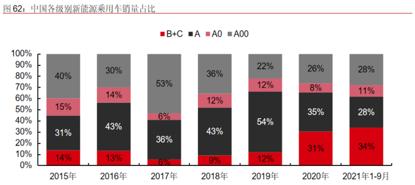 高端电动车方面,2018年之前,中国消费者的选择范围相当小。但蔚来等新造车企业的出现和特斯拉入华,以及其他合资和自主品牌高端车型的推出,使得中大型电动车的市场快速打开。今年1-9月,B级和C级新能源汽车的市占率达到历史最高的34%。李金勇分析,随着智能座舱和自动驾驶的实现,以及相关硬件成本的不断下降,2022年,这两类新能源汽车的市占率还将继续提升。首先,以特斯拉、蔚来、理想、比亚迪(部分车型)等为代表的高端智能电动汽车,明年的产量有望达到150万辆-200万辆,继续挤占BBA等传统燃油高端车型的市场份额。其中,特斯拉的产量可能高达65万辆,强力推出和宣传ID.系列车型的大众产量或将达到14万辆。![]()