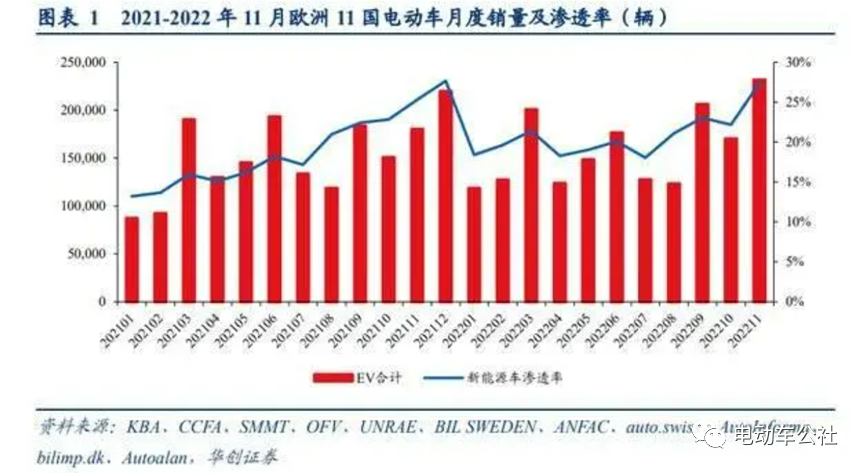 欧洲这边在环保政策的推动下,新能源渗透率一点也不必中国低,下面这张图可以看出,欧洲新能源渗透率差不多在25%左右。