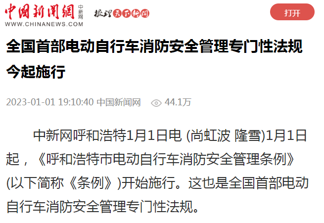 针对电动自行车火灾频发且极易造成火灾伤亡和重大财产损失,内蒙古呼和浩特市制定出台了《呼和浩特市电动自行车消防安全管理条例》并于2023年1月1日起实施,据悉,这是全国首部地方性电动自行车消防安全管理专门性法规。《条例》共包含总则、消防安全保障、消防安全管理、法律责任、附则五方面31条内容,重点解决了当前电动自行车消防安全管理中的“五大难题”。《条例》压实了电动自行车消防安全的组织领导责任、监督管理责任和单位个人主体责任,强化快递、外卖等使用电动自行车从事经营活动企业以及电动自行车互联网租赁企业的责任。对电动自行车的相关经营活动、使用行为进行约束性规范,由以往重点对使用环节的单一性管理转变为对电动自行车生产、销售、维修、停放、充电等环节的全链条管理。《条例》明确电动自行车停放、充电场所的建设要求,鼓励采用数字化、新技术加强电动自行车管理,推动建设安全的、群众用得起的停放、充电场所,保障群众合法权益。明确了对电动自行车关键性组件进行拆改、停放充电的禁止行为,从源头上杜绝因违规改装维修、进楼入户停放充电等引发火灾事故。此外,《条例》还增加对电动自行车违规改装维修、违规停放充电的行为和消防安全管理责任不落实等罚则,明确处罚实施主体和具体数额。众所周知,电动自行车一边是群众出行、快递外卖的重要交通工具,一边又是城市交通安全、消防事故的重大风险隐患,已经有太多的事故教训让我们疼痛不已。过去,更多靠职能部门的专项行动加强电动自行车的社会治理,现在,通过制定地方性法规来为电动自行车的管理与使用划定边界,这是从治标向治本转变的一个重要进步。《呼和浩特市电动自行车消防安全管理条例》以具体问题为导向,是切实提升城市公共消防安全水平的生动实践,对保障人民生命财产安全具有重要意义。法规只有三十一条,简短却务实,便于职能单位与执法部门管理适用,也易于人民群众理解遵守,很多内容值得我们关注与学习。比如,《条例》在第十八条和第十九条对于快递、外卖、电动自行车互联网租赁企业等单位的主体责任进行明确规定,要求他们规范电动自行车集中停放、充电场所的设置和管理,而且要配备专门管理人员。对于普通群众而言,在第二十三条中对电动自行车的停放、充电、维修、保养等规定了“六不准”,像公共门厅、楼梯间、安全出口、人员密集场所内、居住场所内等均不得停放或充电,如有违反,第二十八条规定可以有一次改正机会,当拒不改正时,由消防救援机构对经营性单位和个人处以2000元以上1万元以下罚款,对非经营性单位和个人将处以500元以上1000元一下罚款。法律的生命力在于实施,这部法规能否从根源上解决电动自行车消防安全管理问题,一要靠管理部门严格落实《条例》责任,强化综合治理;二要靠执法部门严谨作为,强化执法检查;三要靠宣传部门宣讲规则,强化社会提示;最终要靠电动自行车的使用人改变习惯,文明使用。法律视野的背后,是对民生的关注与民意的回应。我们也期待这部《条例》让安全与需求和谐共处,能够让电动自行车的管理实现规范化,更好地服务社会,守护好人民群众的生活安全。![]()