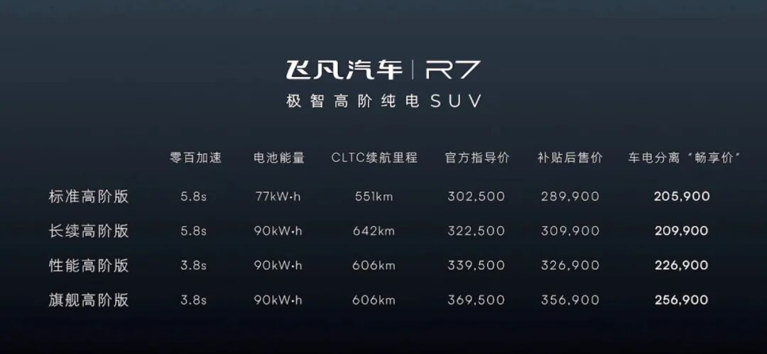 新款飞凡R7上市,价格有所调整;