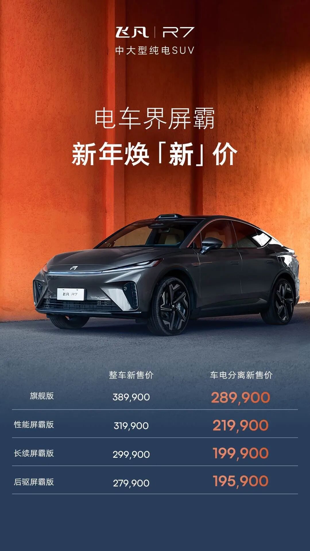 新款飞凡R7上市,价格有所调整
