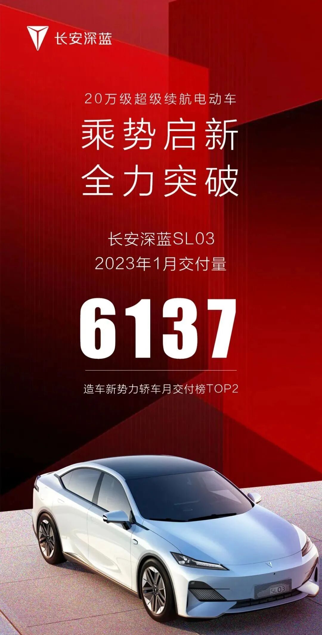 2023年1月,长安深蓝SL03交付6137辆。