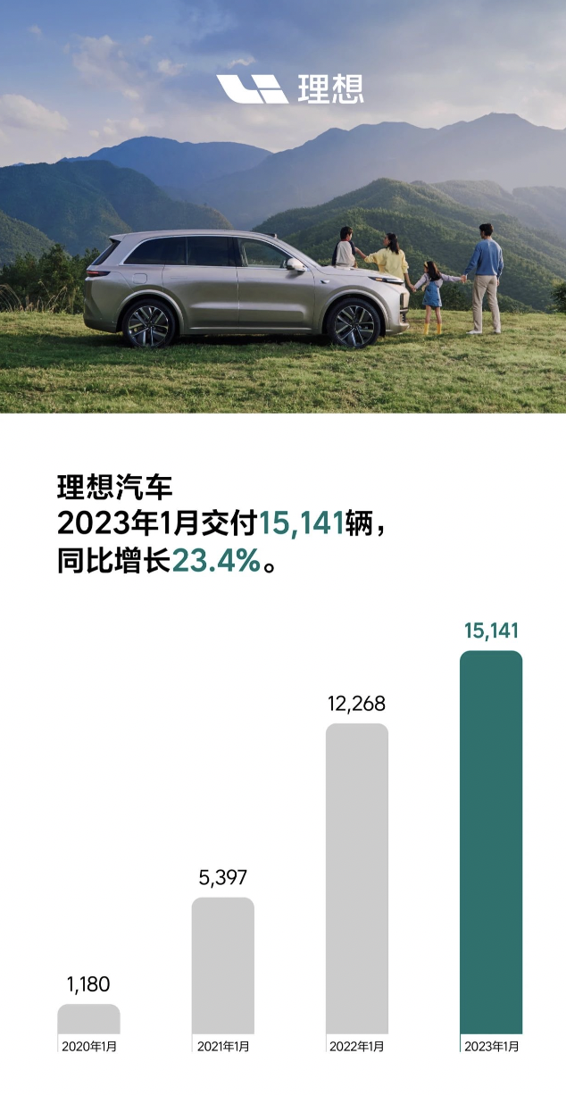 2023年1月,理想汽车交付15141辆汽车。