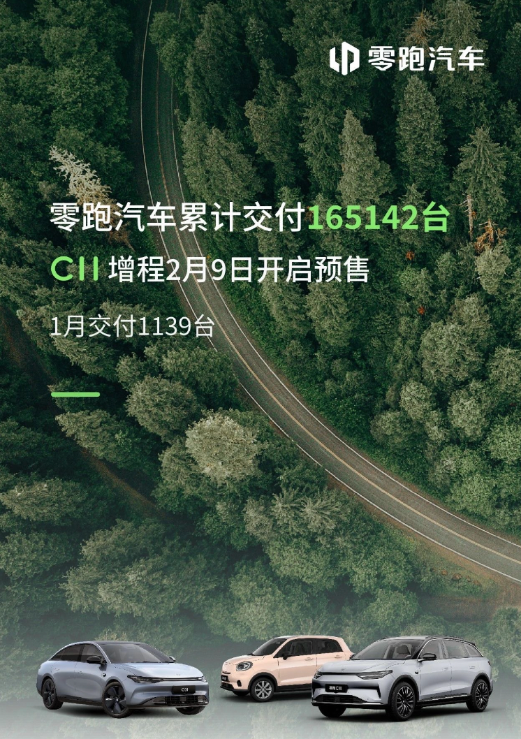 零跑汽车1月交付1139辆;