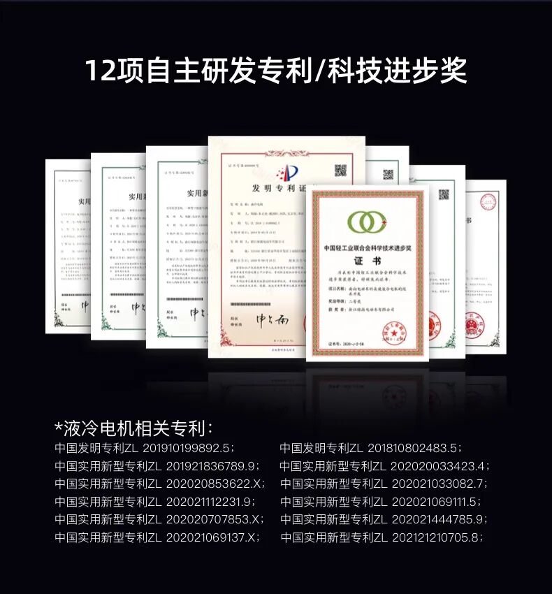为了解决这个问题,绿源在2019年就开始了液冷科技的研究,改进了电机内部的设计和构造,向电机内部注入航空级别冷却液,冷却液直接包裹在电机磁钢上,并与电机轮毂外壳相连,散热效率得到明显提高,同时还能起到防锈退磁的作用。