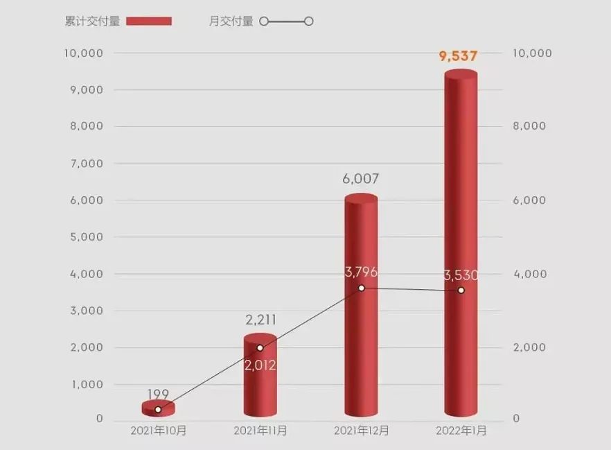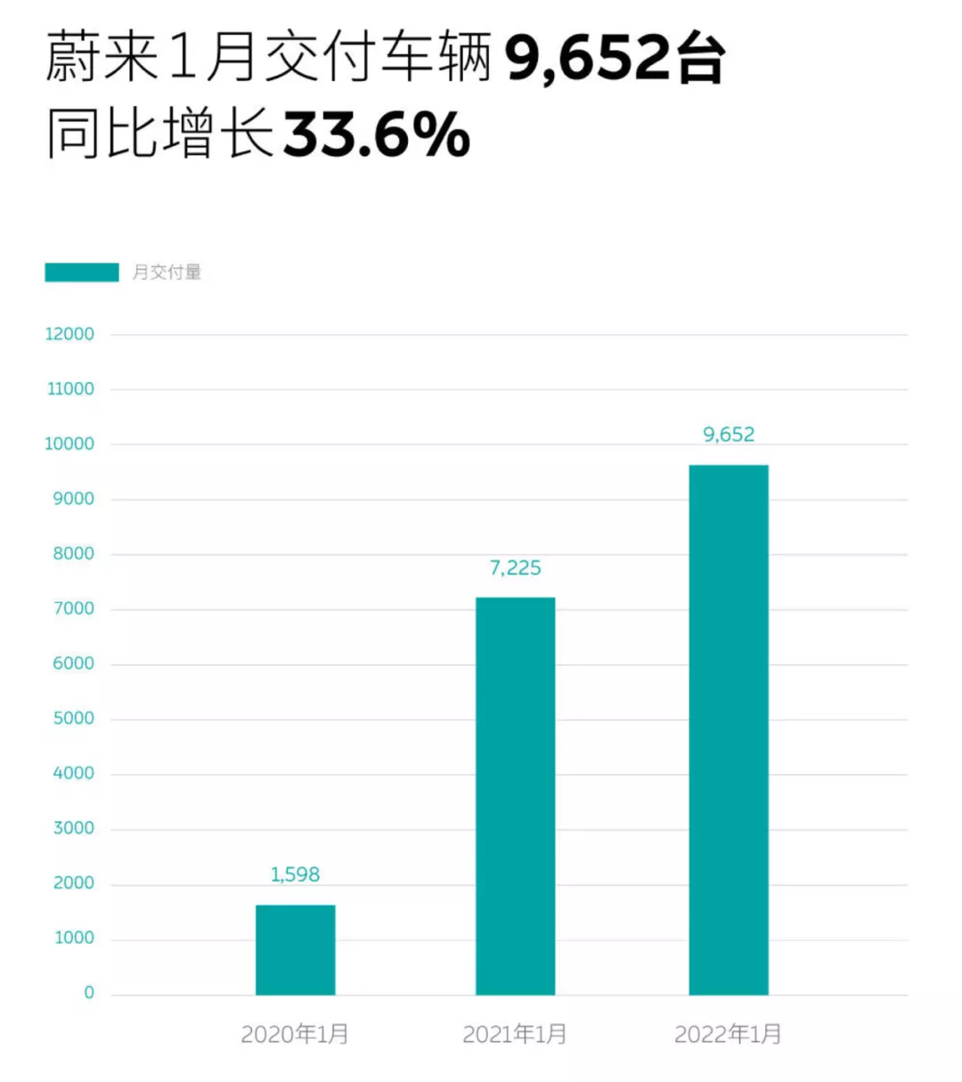 2月1日,蔚来汽车公布最新交付数据。数据显示,2022年1月,蔚来交付新车9,652辆,同比增长33.6%;截至2022年1月底,蔚来车辆已累计交付176,722辆。从销量来看,蔚来的交付成绩已经落后小鹏、理想半个身位。一个原因可能是受供应链影响,产能受限;另一个原因,二代平台的ET7和ET5会在今年上市,也在一定程度上影响了一代平台车型的销量。在新车上市以后,相信这一现象会得到改观。